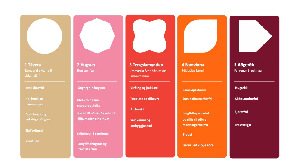 - Hugsun (Thinking) – Að efla gagnrýna og heildræna hugsun til að takast á við flóknar áskoranir.